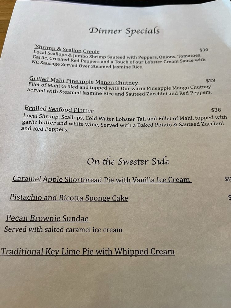 “ Well how can you visit the OBX and not try a place that has been featured on the Food Network? We stayed right down the street from CC and had never tried their breakfast, so we got up early and phoned in our orders. We arrived 10 minutes later and the order was ready. The pancakes were ginormous and light and fluffy. Flavor was buttery. The crab cake breakfast sandwich was on point as well. My daughter really enjoyed the sausage one day and the bacon the second day. We had done dinner there before and breakfast did. It disappoint. Seems you can get exceptional quality food both at breakfast and dinner. A great experience with no negatives. Staff was friendly as well. We'll be repeat patrons on our next visit to the OBX. ”